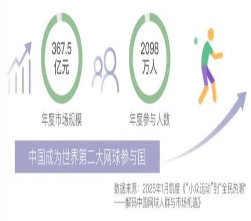 我還查到,在 2025 年的中國,已經(jīng)有兩千多萬人在打網(wǎng)球。而這個(gè)數(shù)據(jù)在十年前還不到兩百萬。
