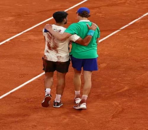 我很想分享我最喜歡的一場比賽,2025年的法網(wǎng)男單決賽,阿爾卡拉斯對戰(zhàn)辛納。