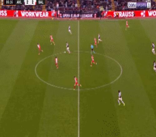 第87分鐘,阿洛巴禁區插上推射遠角破門,維拉3-2反超薩爾茨堡紅牛
